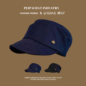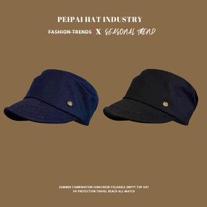帽子日系复古小金标牛仔贝雷帽女时尚百搭气质护甲帽显脸小报童帽