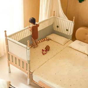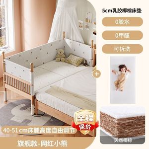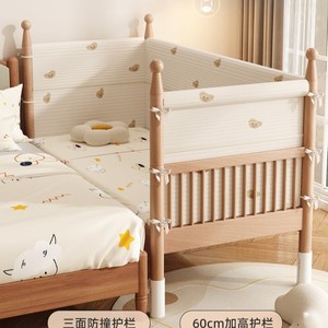 实木榉木儿童拼接床婴儿拼接床可升降护栏加宽床边床宝宝单人小床