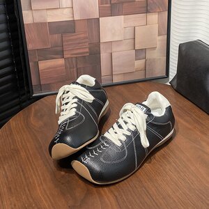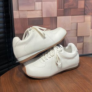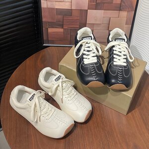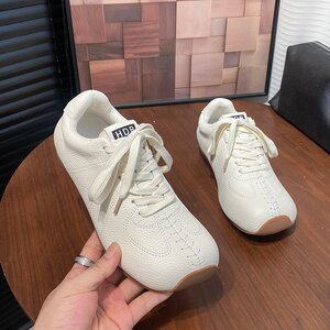 真皮女鞋时光线条-极简荔枝纹结构德训鞋4cm百搭方头小白鞋ins风
