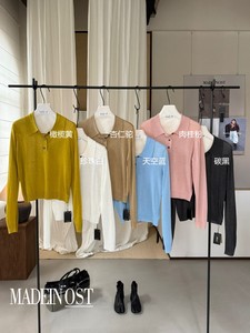 【FEI】天丝亚麻Polo领轻薄针织衫女韩系简约纯色百搭长袖小衫