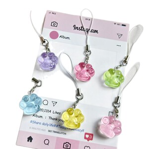 七彩冰透细闪猫爪手机绳可爱手机链学生闺蜜礼物包包挂件挂饰情侣