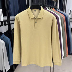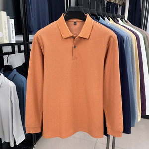 跨境纯棉t桖男秋冬季新款翻领纯色休闲T恤上衣男士长袖polo衫打底