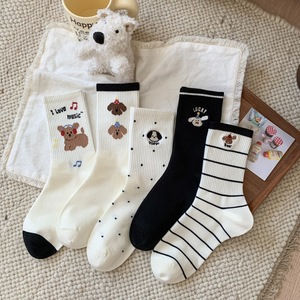 无骨小狗袜子女秋冬季新款纯棉中筒袜ins潮透气可爱卡通网红长袜