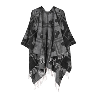 新款流苏几何图案披肩女秋冬百搭田园风格开叉斗篷保暖提花大围巾