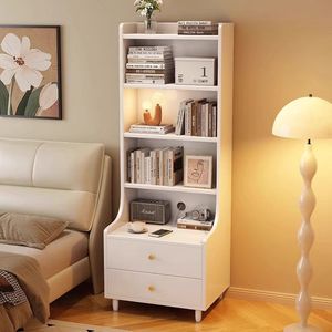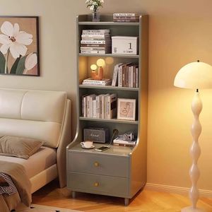 简约多层置物架卧室床边实木床头柜书架一体加高储物柜小型收纳