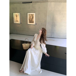 老钱风气质长袖蕾丝雪纺衫上衣优雅拼接半身长裙套装女