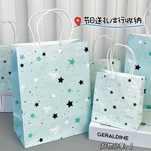 新款薄荷星星礼品袋曼波绿高颜值ins风清新节日生日礼物手提纸袋