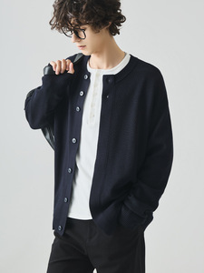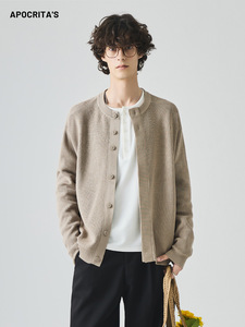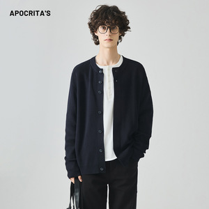 APO男装|跨境男士毛衣秋季宽松圆领老钱风松弛感针织开衫外套上衣