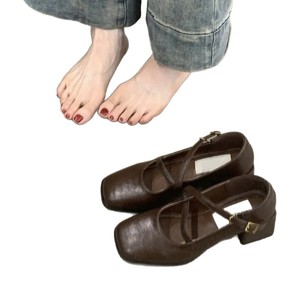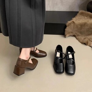 通勤版内增高5cm粗跟方头高级感玛丽珍小皮鞋秋季新款复古单鞋女