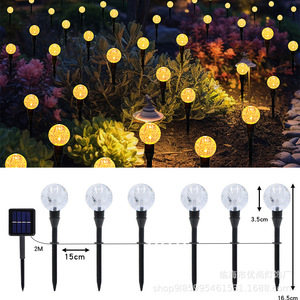 跨境新款户外庭院花园草坪灯串装饰水晶球串灯太阳能气泡球地插灯