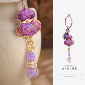 【不愁吃-福碗】宋锦葫芦紫色流苏包挂