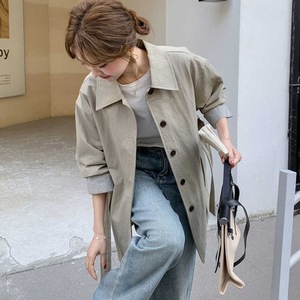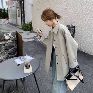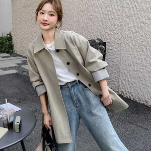 美式夹克小个子条纹感翻领工装2025新款风衣外套女春秋拼接