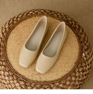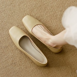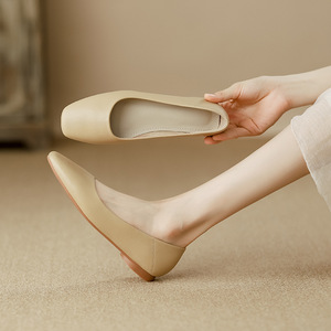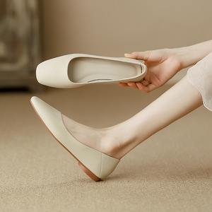 牛皮版~法式真皮奶奶鞋女平底2025新款方头单鞋女温柔软皮豆豆鞋.