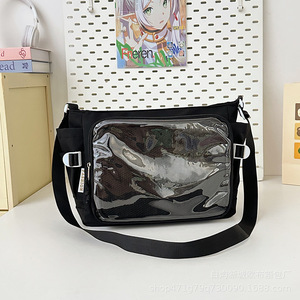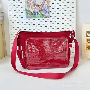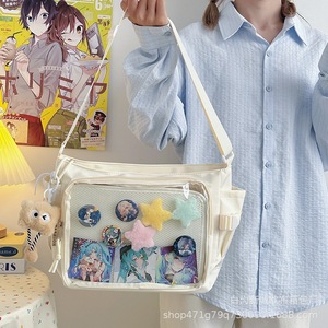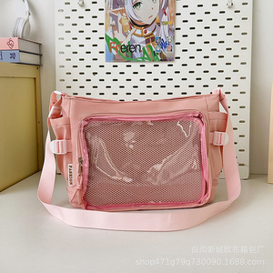 学院风百搭简约大容量邮差包上课包女透明吧唧单肩包斜挎娃包痛包