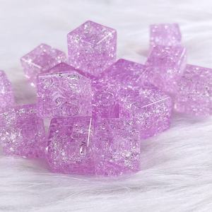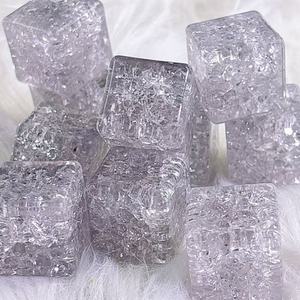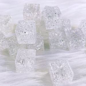18mm爆花水晶仿真平面冰块方块DIY手工饰品配件材料彩色爆花冰裂