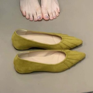 法式尖头浅口单鞋女2025新款夏季百搭内增高气质绒面褶皱瓢鞋一脚