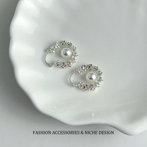 韩系ins超闪碎银子冷淡风珍珠耳扣精致高级感气质百搭小众简约耳