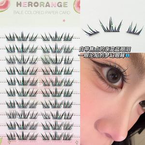 HERORANGE 清新渐变蓝眼泪假睫毛超自然仿真单簇小薄片卷翘眼睫毛