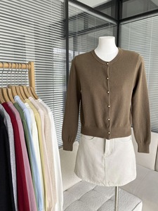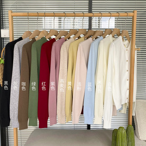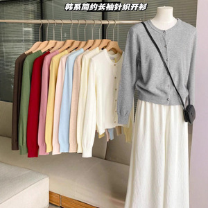 韩系简约圆领单排扣糖果色针织开衫女新款早秋温柔风长袖外套