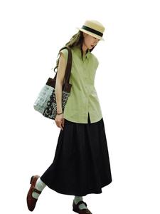 超好看日系无袖衬衫女夏季2025新款休闲宽松薄款翻领坎肩衬衣上衣