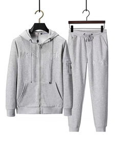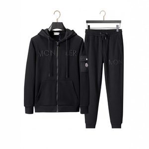 新款欧美蒙MON满印CLER口休闲开衫连帽拉链卫衣潮牌时尚男女套装