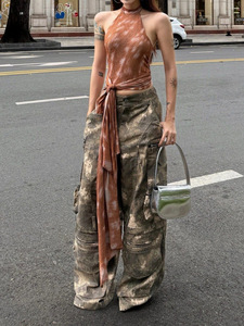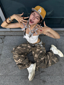 欧美辣妹风跨境亚马逊2025女美式高腰迷彩宽松跳舞 hiphop 运动裤
