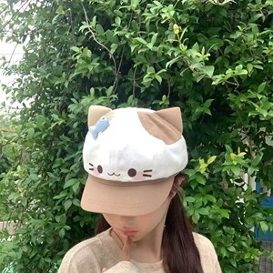 甜美可爱小鱼猫咪贝雷帽女卡通显脸小百搭八角帽可爱俏皮画家帽子