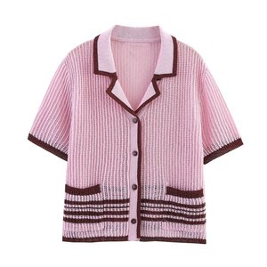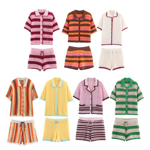 外贸单!春夏季新款欧美风女时尚休闲针织POLO衫外套短裤3920284
