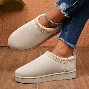 厚底雪地靴女外贸秋冬新款外穿增高加绒皮毛一体包头半拖大码棉鞋