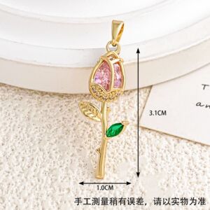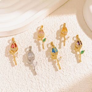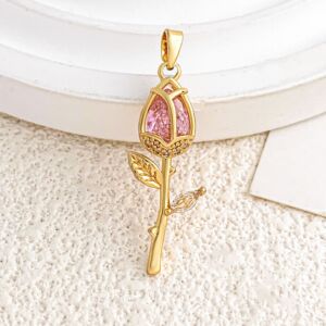 XL2981玫红玫瑰吊坠金色