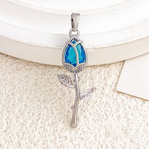 XL2983海蓝色玫瑰吊坠银色
