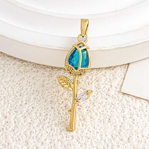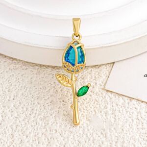 XL2983海蓝色玫瑰吊坠金色