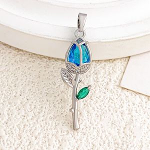 XL2983海蓝色玫瑰吊坠银色绿叶