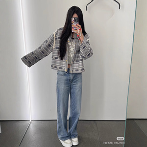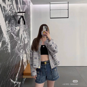 ce25ss春夏新款条纹徽标logo提花单排扣圆领夹克外套时尚百搭