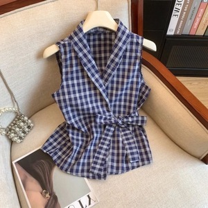 绑带收腰上衣设计感格子外穿背心好漂亮女装夏季2025新款