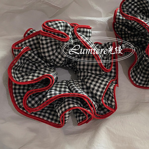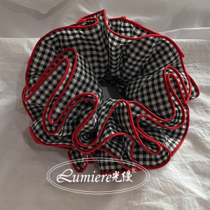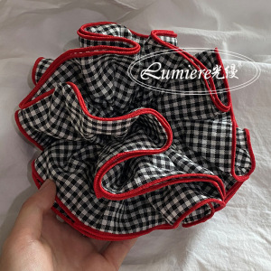 重工纯棉黑白格红边四层大号发圈日韩ins时尚新款丸子头花肠圈女