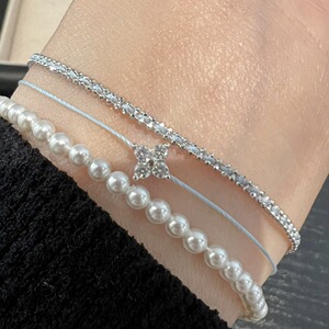 法国红绳s925纯银满钻baby蓝四叶草手链女轻奢小众高级感手绳手饰