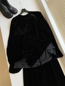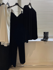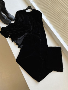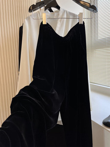 初秋款_优雅高阶_柔软细腻丝绒圆领上衣+绒阔腿裤套装一件代发