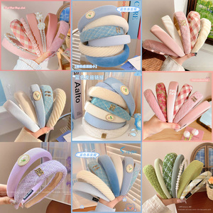 7#粉色宽边格子发箍