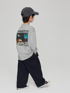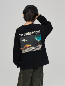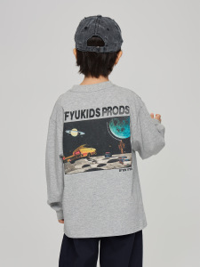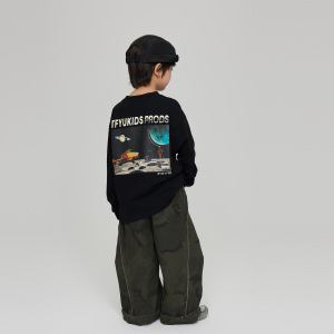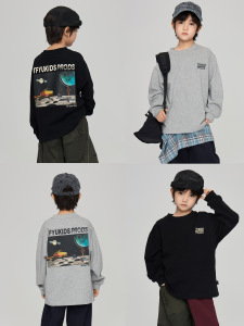 2025秋季新款儿童山系风印花圆领上衣男童长袖棉T恤宽松打底衫潮