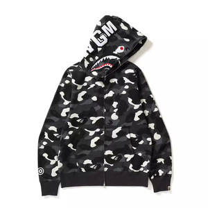 跨境外贸一件代发高版本潮牌BAPE鲨鱼迷彩拉链开衫卫衣连帽外套