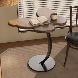 简约蝴蝶边几黑胡桃色木茶几中古风客厅沙发卧室边床头柜置物柜
