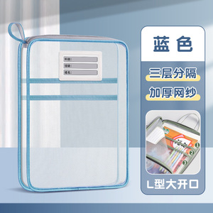 L型科目袋学科分类袋透明网纱文件袋拉链式大开口学生考试手提袋