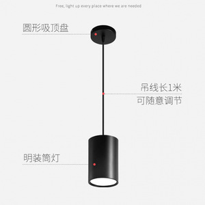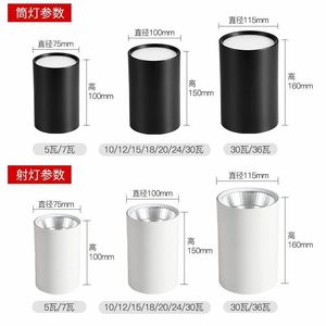 led明装筒灯cob明装射灯圆形吊线吸顶式过道背景免开孔寸无主灯