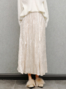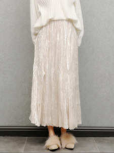 丝绒半身裙丨春秋冬季米色温柔褶皱裙高腰A字百褶裙长裙女