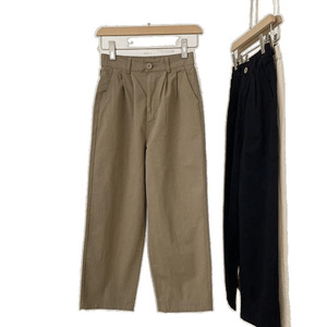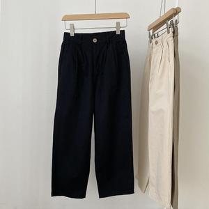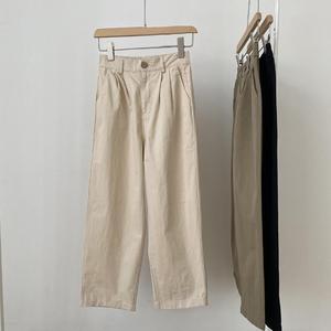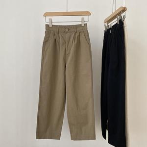 夏季杏色裤子女休闲个性纽扣工装裤高腰直筒哈伦裤日系bobo裤百搭