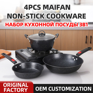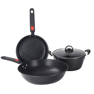 麦饭石不粘锅锅具套装无涂层炒菜锅全套家用高颜值炒菜煲汤牛奶锅