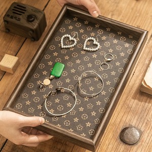 现货长方形桌面首饰摆件钥匙玄关收纳盒收纳皮革中式茶盘储物托盘