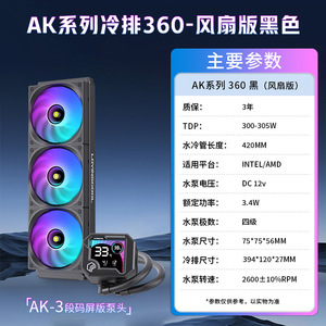 段码屏360水冷ARGBcpu散热器智能温度显示散热冷排风扇一体式水冷