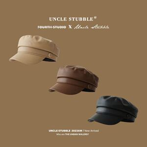 pu皮黑色八角帽复古秋冬鸭舌帽子女韩版休闲百搭日系报童帽潮软顶